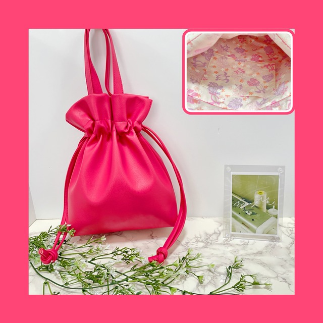 人気の巾着バッグをショルダーバッグとしても使えるように改良しました! 着脱可能なショルダーストラップが長さ調整できるようになってますますファッションの幅が広がります(˶'ᵕ'˶) . コンパクトなイメージのある巾着バッグ。 マチをつけたことにより、収納力をアップさせました。 約 縦30cm×横27.5cmの見た目のコンパクトさはそのままに、500mlのペットボトルを入れても余裕のあるデザインです。 . 内側には明るい布を使用し、物を見やすいようにしました。 さらに内ポケットをつけることで、バッグの中で見失いがちなリップや鍵、カードなどを入れられるようにし、無くしそうなものもしっかり収納でき、見つけやすい。 . 持ち手はもちろん、巾着紐とショルダーストラップもバッグ本体と同一素材で製作しているため、統一感のある仕上がりです。 . 合皮素材を使用しているため、本革の素材感を保ちつつ、柔らかくて軽い、そして汚れにくくなっています。 合皮は水を弾きやすいため、雨の日でも気にせず持ち歩くことができます。 . 〈商品詳細〉 カラー:ホットピンク サイズ:約H30×W27.5×D6(cm) 持ち手:約32cm 内ポケット:約H16×W23 ショルダー:約60~110(cm)まで調節可能 素材:合皮 一つ一つ手作業で制作しているため、サイズや色に多少の誤差があります。ご了承ください。 ご購入前に必ず注意事項をお読みください。 【ご購入時の注意点】 ○1つ1つ手作業で製作しているため、色や形に若干の差が出てしまう場合があります。 ○実際の色味に近づけて撮影していますが、撮影する場所やお使いの端末により、色味が微妙に異なって見える場合があります。 ○お客様都合による返品はご遠慮ください。万が一お届け商品に破損・不備等ありました場合は、商品到着後3日以内にご連絡下さい。 尚、発送過程における破損に関しては一切の保証は出来かねます。 ○宛先不明、住所誤記載等で商品が戻ってきた場合は、着払いにて再度発送させていただきます。 ○商品の発送はお客様のご入金が確認でき次第2~3日程度で発送させていただきます。 ここまでご覧頂きありがとうございます。 カラー変更、サイズ変更等のオーダーも承っております。 ご質問等ありましたら、お気軽にお問い合わせ下さい。