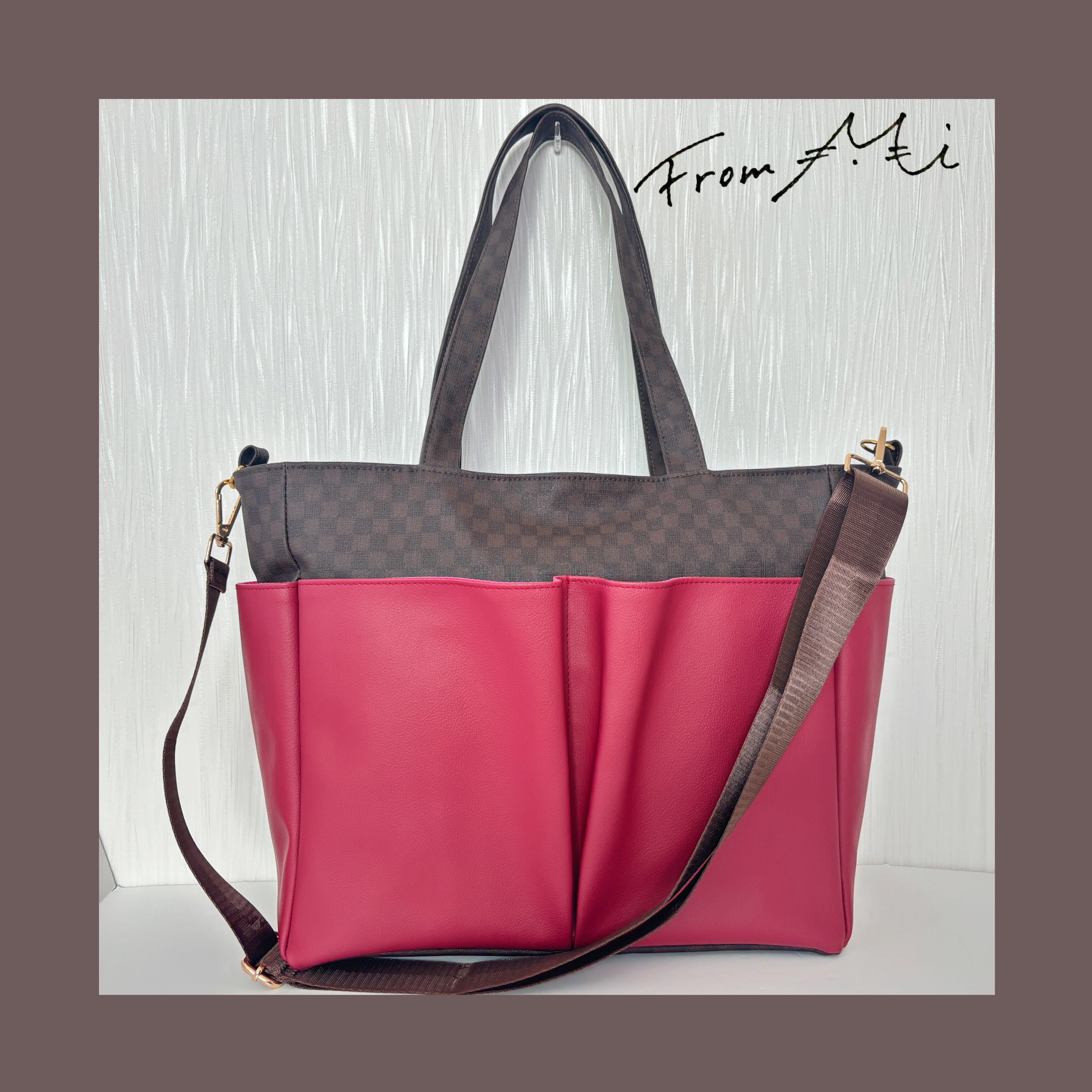 やわらかな合皮を2色を組み合わせた、上品で実用的なトートバッグです。
