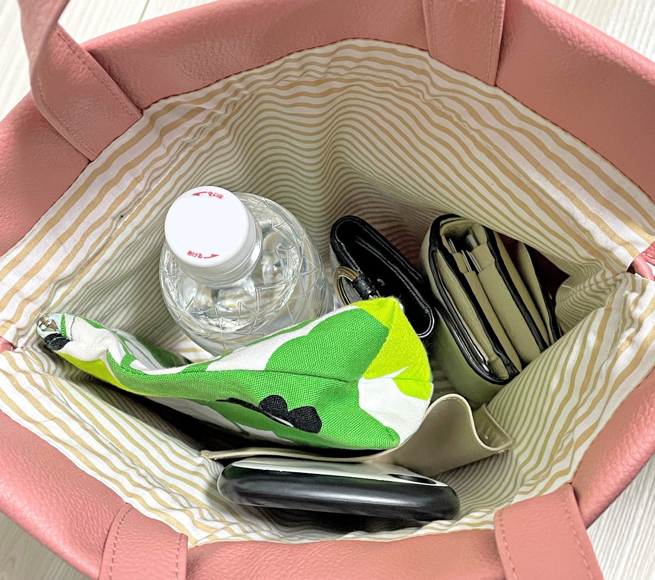 さらに内ポケットをつけることで、バッグの中で見失いがちなリップや鍵、カードなどを入れられるようにし、無くしそうなものもしっかり収納でき、見つけやすい。
