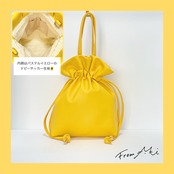 持ち手はもちろん、巾着紐とショルダー紐もバッグ本体と同一素材で製作しているため、統一感のある仕上がりです。