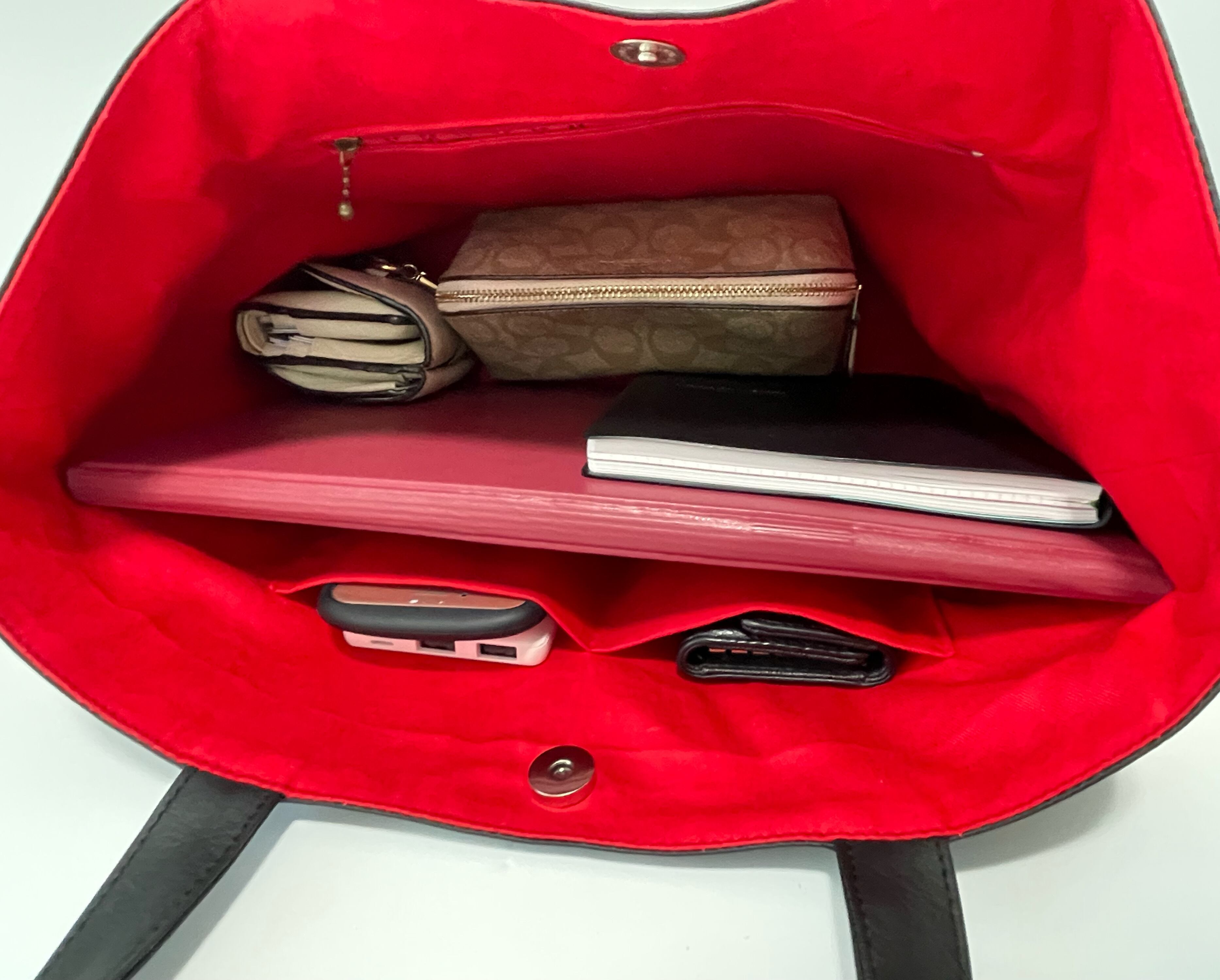 さっと取り出したいリップや携帯電話は内ポケットに…など、用途に合わせた収納が可能です。