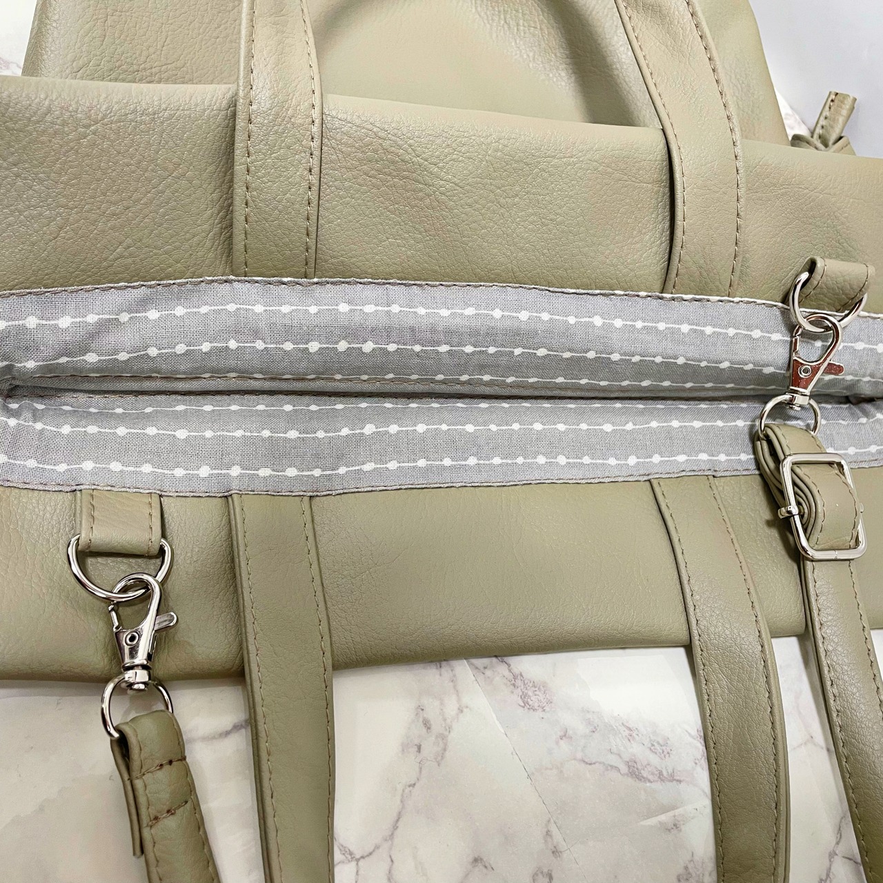 合皮は水を弾きやすいため、雨の日でも気にせず持ち歩くことができます。