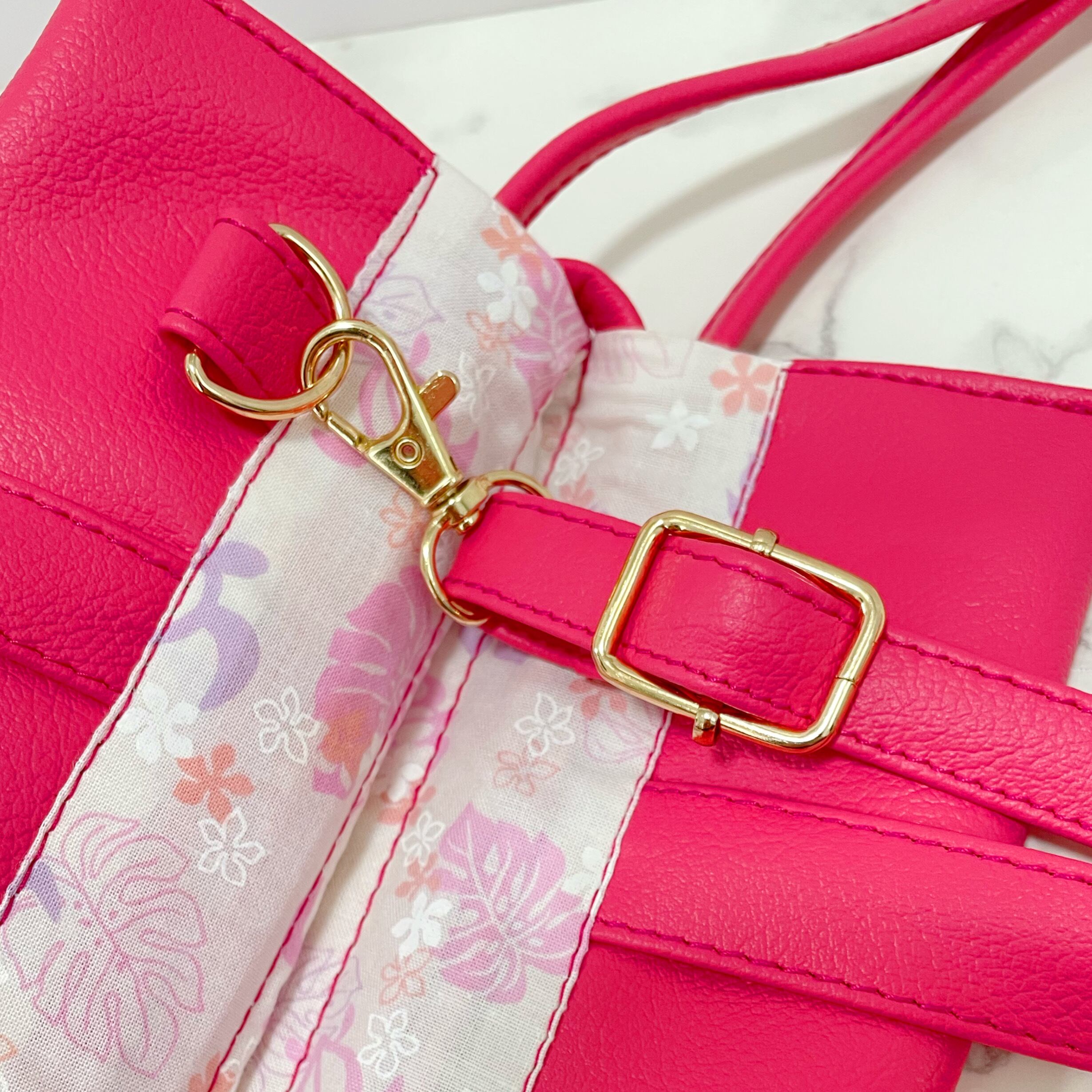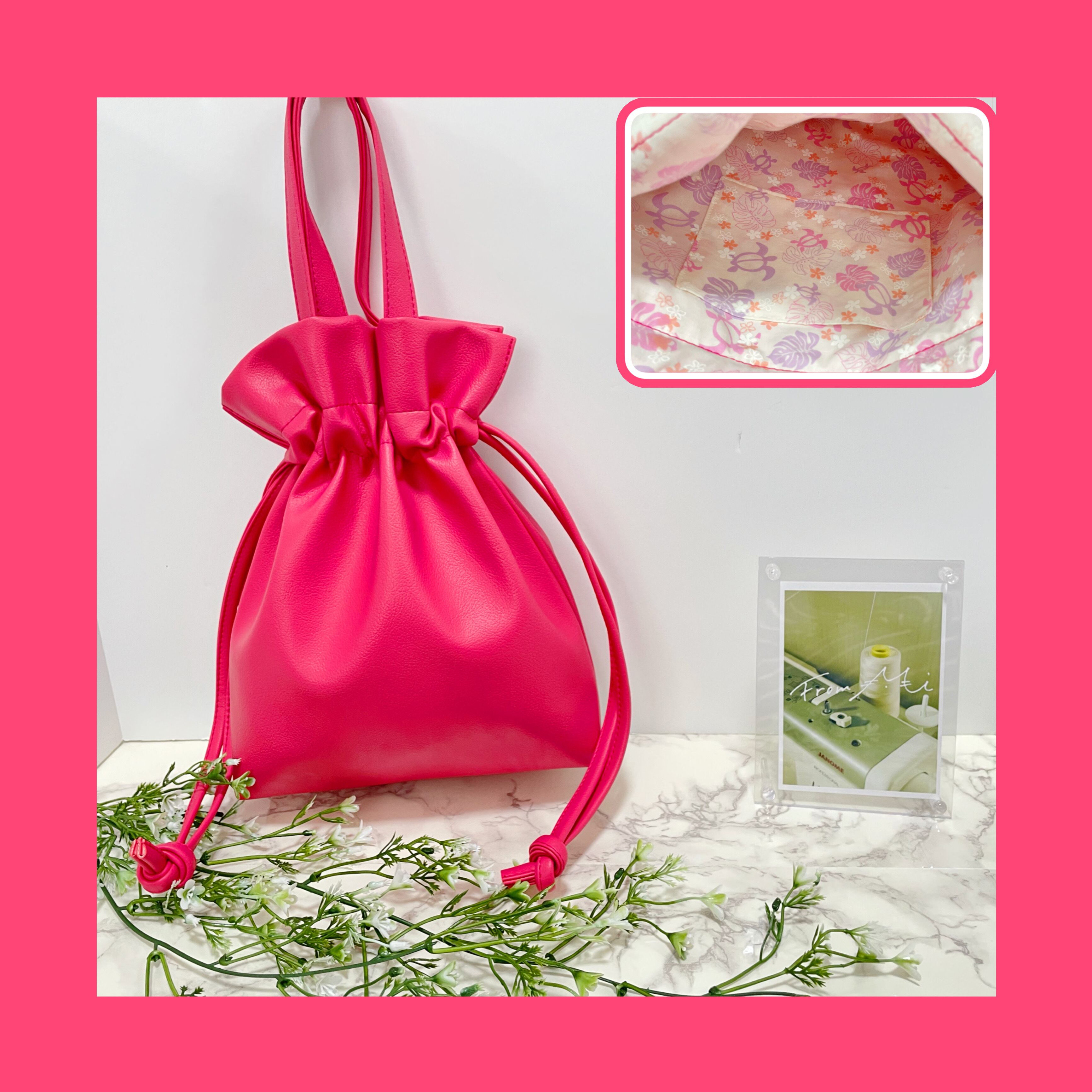 持ち手はもちろん、巾着紐とショルダーストラップもバッグ本体と同一素材で製作しているため、統一感のある仕上がりです。
