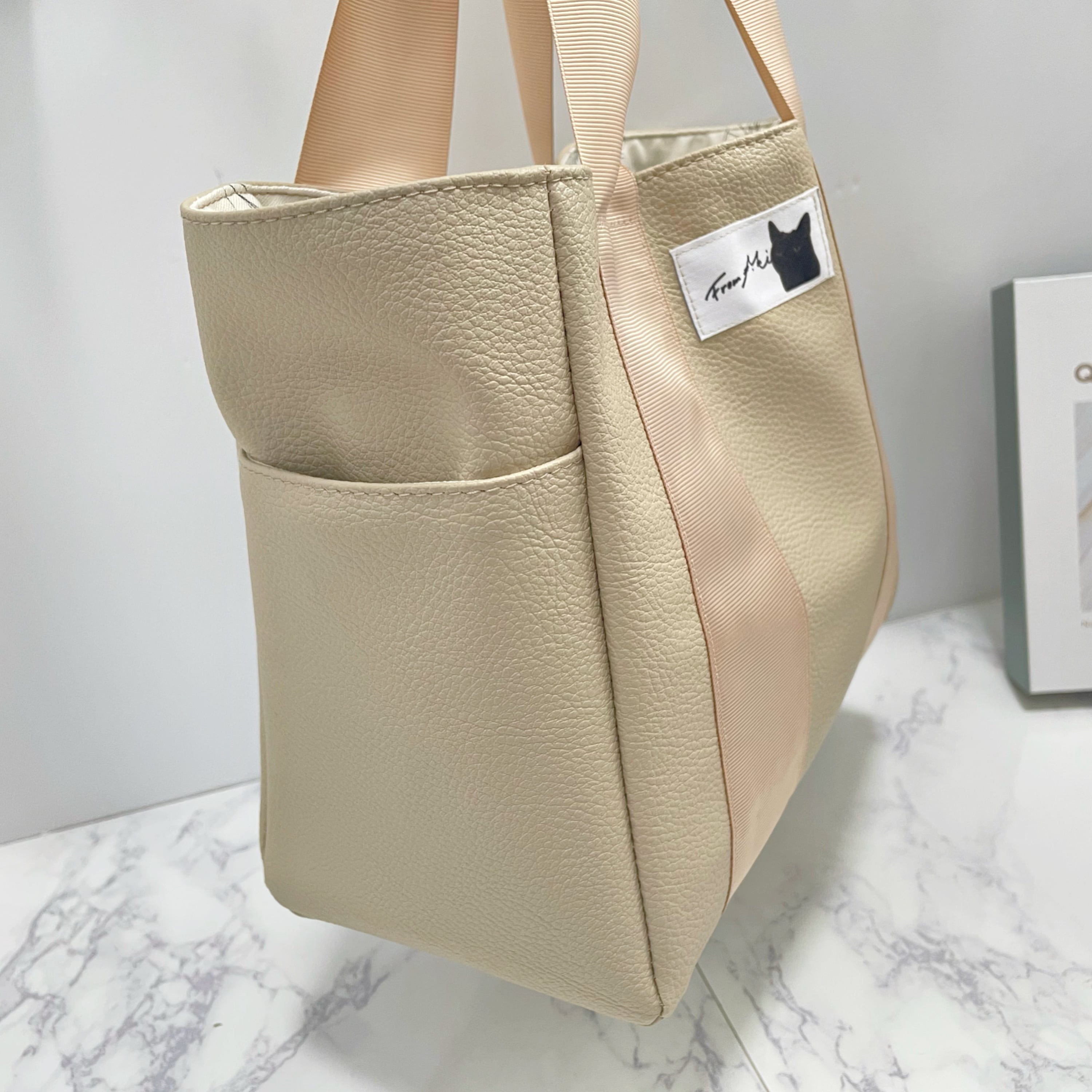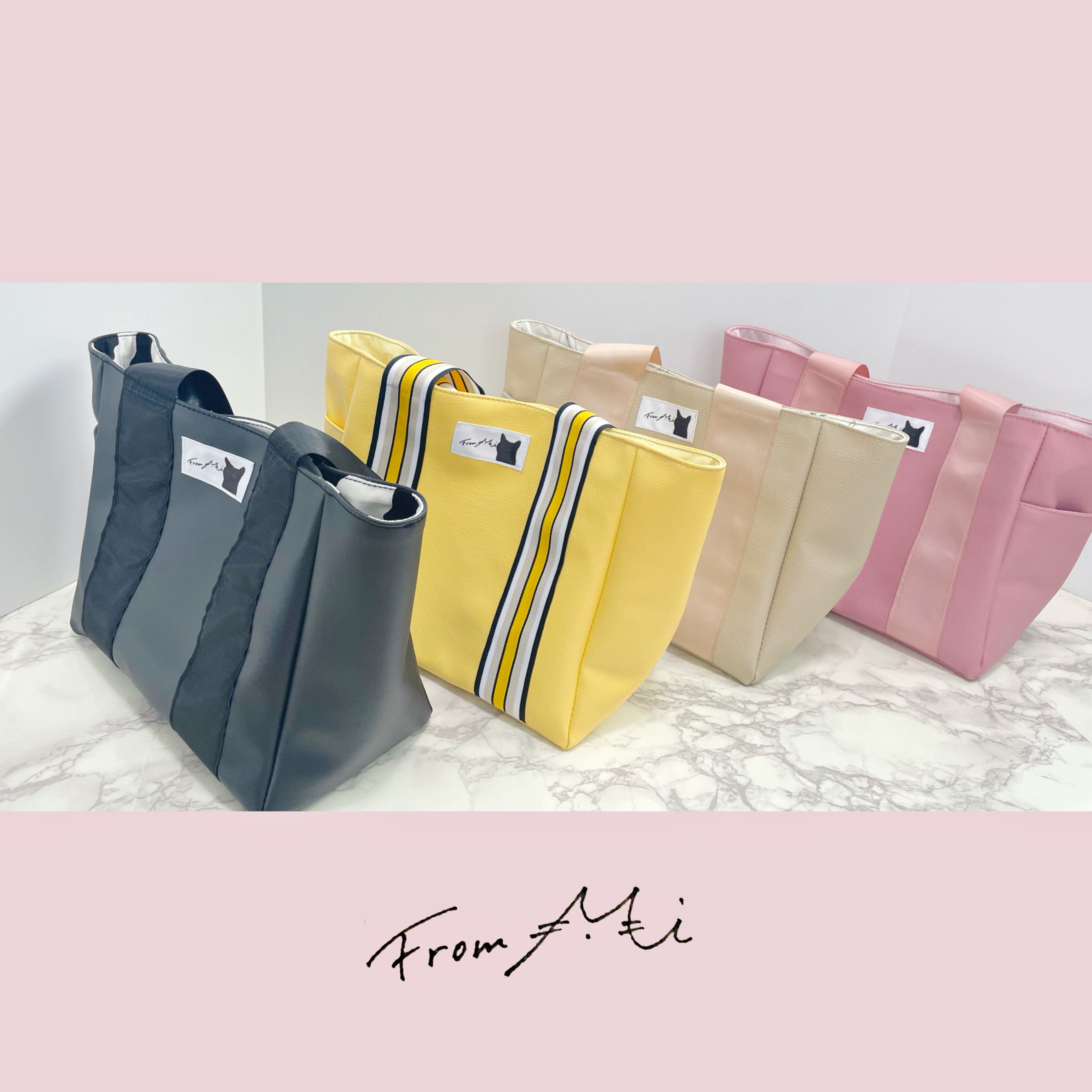 合皮素材で作られたこのバッグは、しっかりとした作りで雨にも強く長くご使用いただけます。