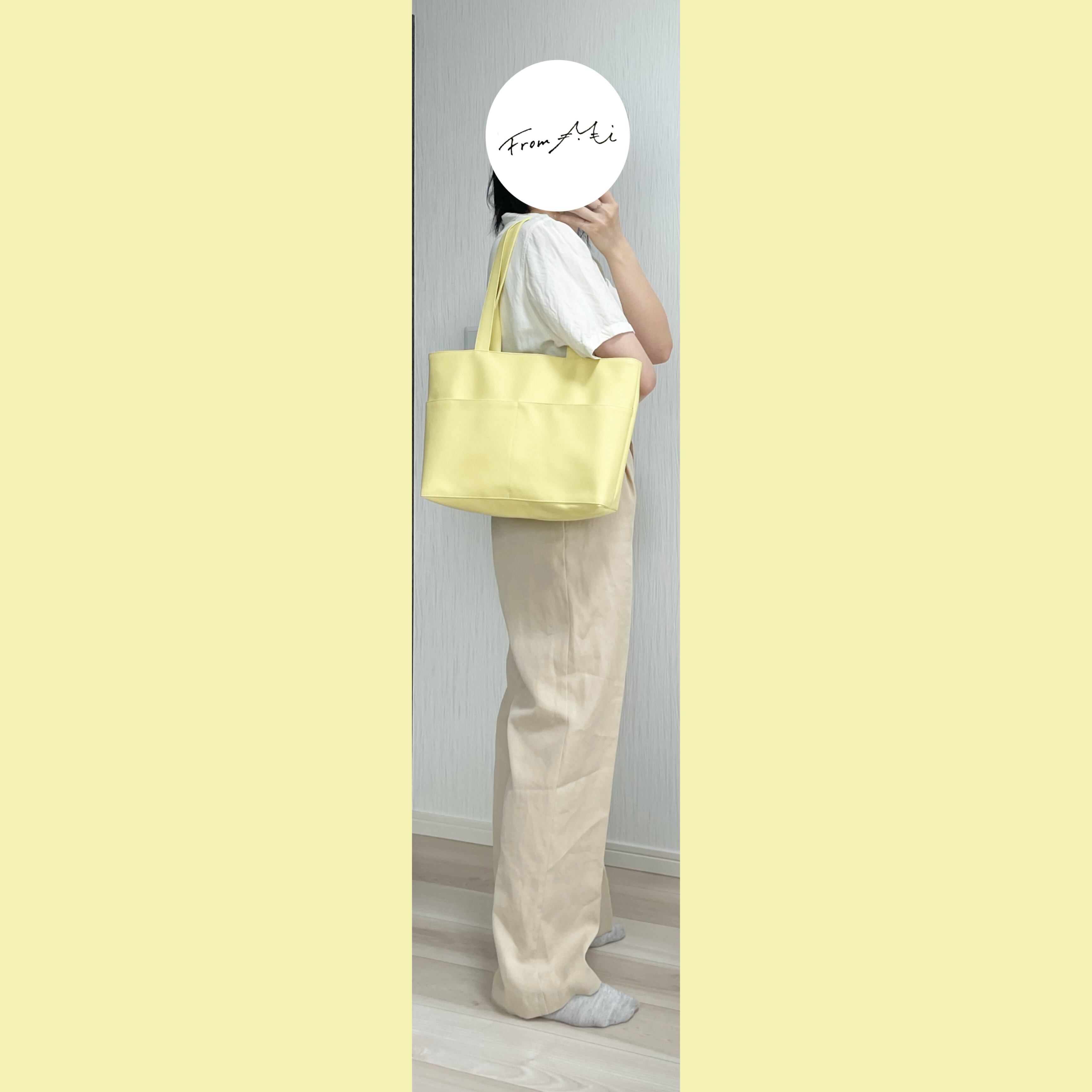 持ち手は長めにしてあるので、コートなどアウターを着ていても肩掛けのできる余裕があり、さらに少し太めの作りにしたことで、肩にかけても痛くなりにくい作りで、使っている時でも形が崩れにくいデザインです。