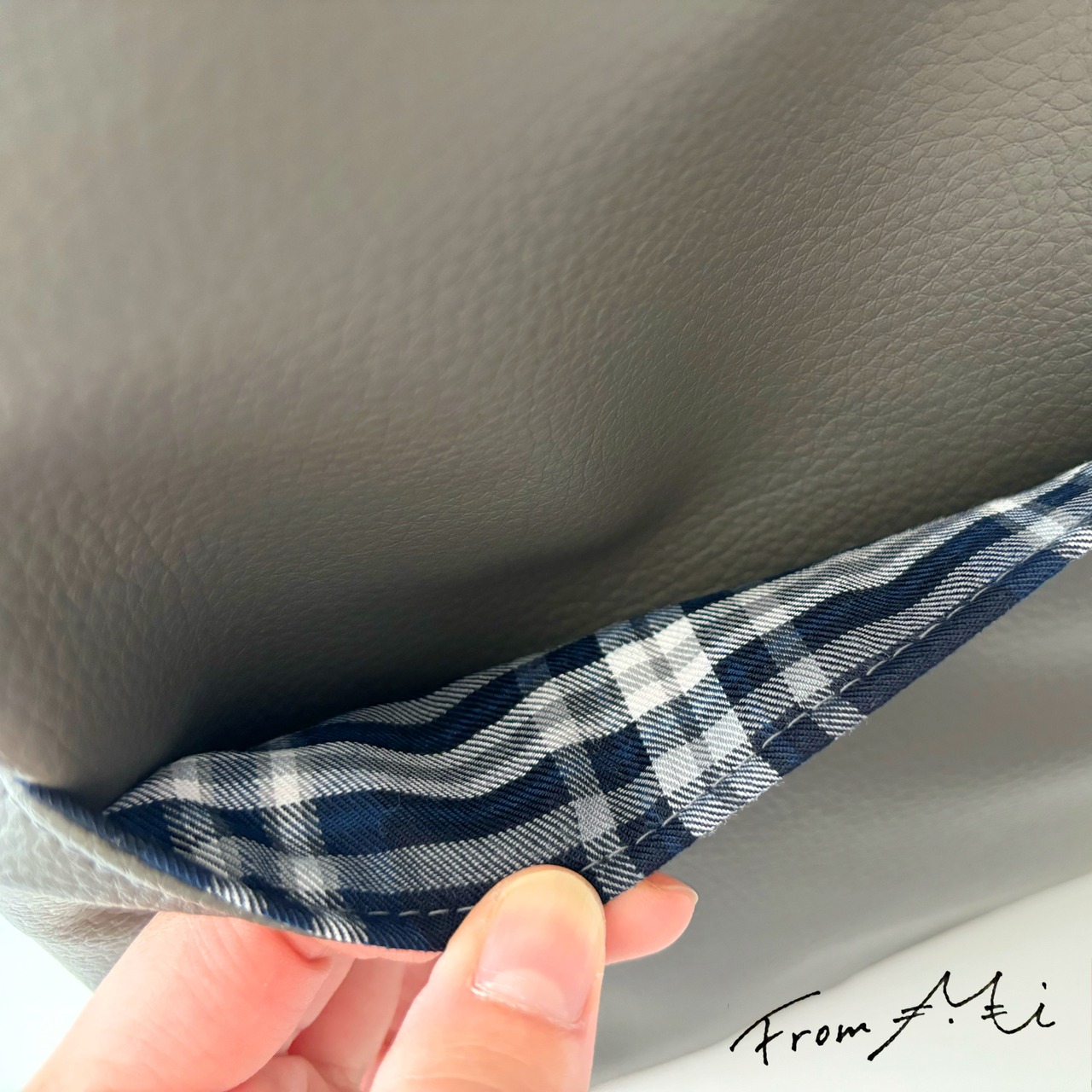合皮素材を使用しているため、本革の素材感を保ちつつ、柔らかくて軽い、そして汚れにくくなっています。