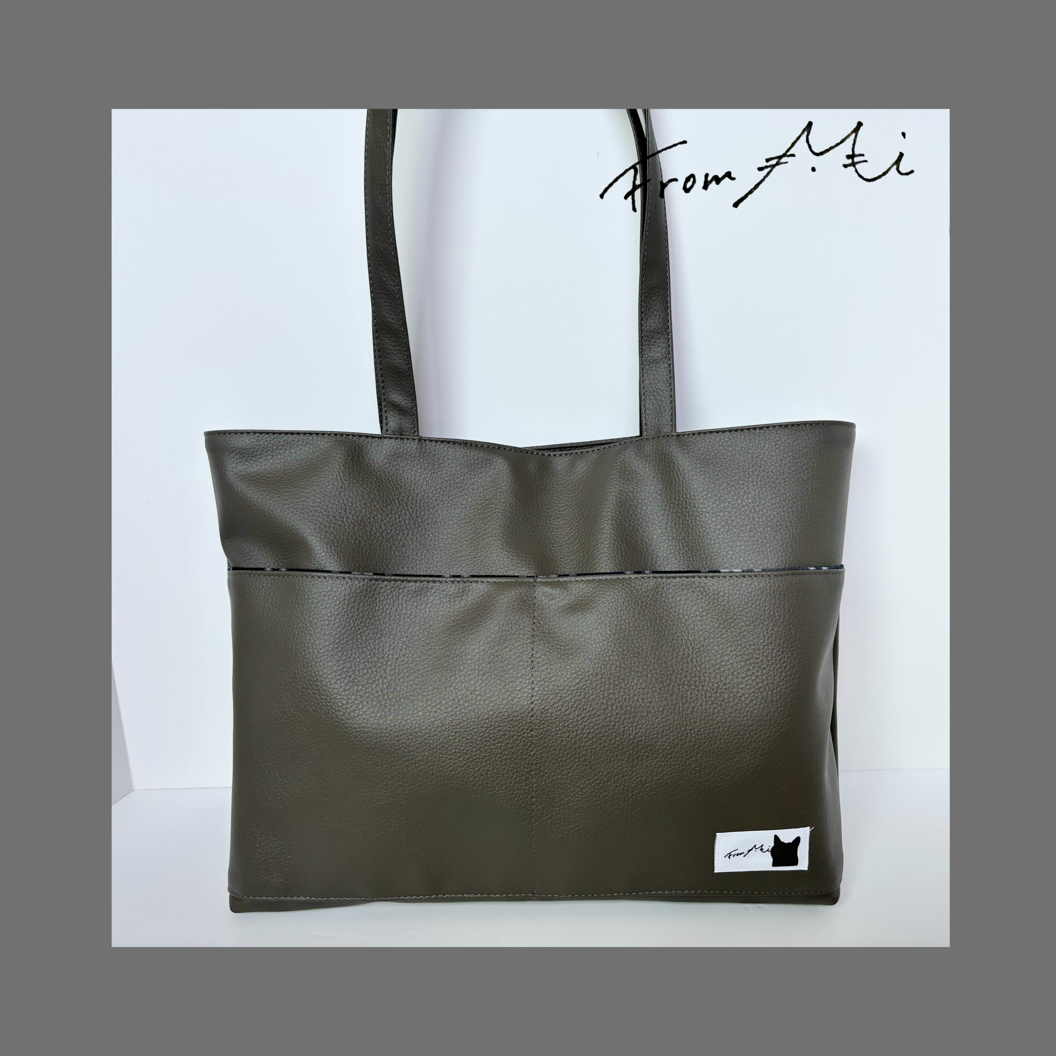 【A4サイズ対応】ファスナーポケット付きレザートートバッグ